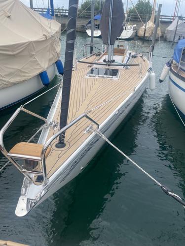Boot mit Vollausattung, Teakdeck und in gutem Zustand, Instrumente von Tacktick (1x Single Display und 1x Dualdisplay mit Masthalterung am Mast, 1x Windmeßanlage im Cockpit), Kombitisch für Kajüte und Cockpit, das Boot verfügt zusätzlich über eine Mittelauflage (ausrollbarer Lattenrost) mit Polster, um die Salonkojen in der Mitte zu einer großen Liegfläche zu ergänzen. |